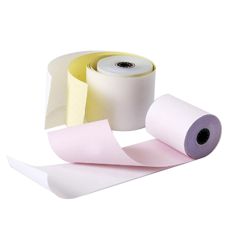 无碳收银纸一般由两层或三层构成,第一联需用针式打印机来打印显色,第二联和第三联靠针式打印机打印压力显色。