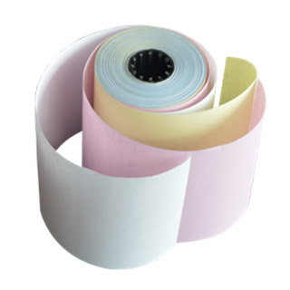 无碳收银纸一般由两层或三层构成,第一联需用针式打印机来打印显色,第二联和第三联靠针式打印机打印压力显色。